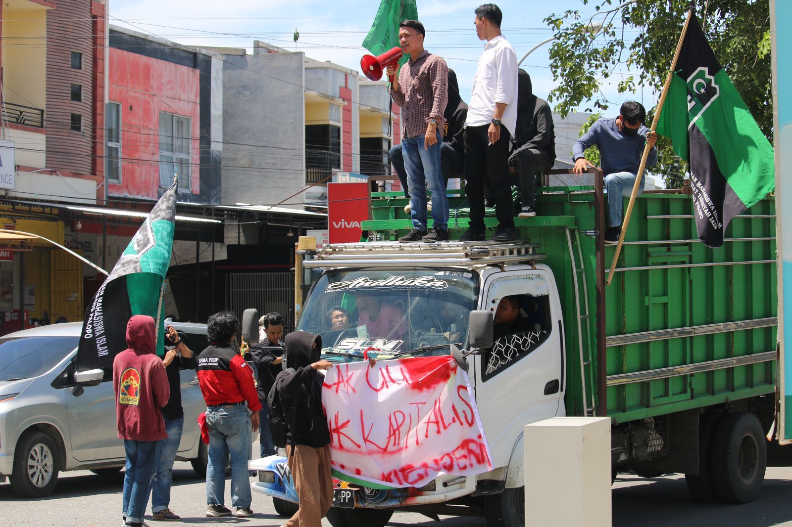 Kronologis pergerakan unjuk rasa aliansi mahasiswa itu yakni pada pukul 10.30 Wita massa aksi melakukan orasi di Lampu Merah Dinasty Jl. Dr. Ratulangi Kecamatan. Wara Utara Kota Pelopo dan menghentikan kendaraan bak terbuka untuk dijadikan sebagai panggung orasi.