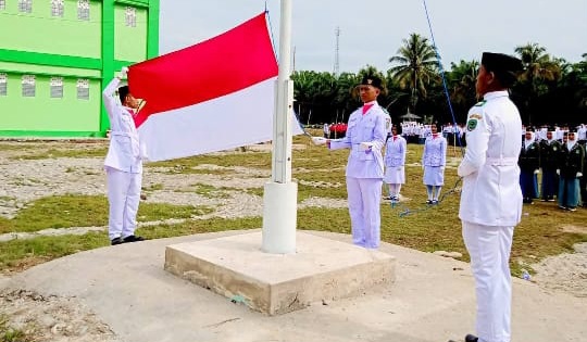 “Hadirin yang saya hormati, puji syukur kita panjatkan ke hadirat Allah SWT, karena pada pagi hari ini kita dapat bersama-sama mengikuti upacara bendera dalam rangka memperingati Hari Ulang Tahun ke-80 Republik Indonesia. Terima kasih kepada seluruh guru, staf, dan terutama para siswa yang sudah mempersiapkan acara ini dengan penuh semangat”, ucapnya.