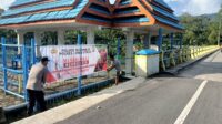 Kapolsek Sukamaju Pasang Spanduk Himbauan Larang Mandi di Bendungan Sungai Tamboke