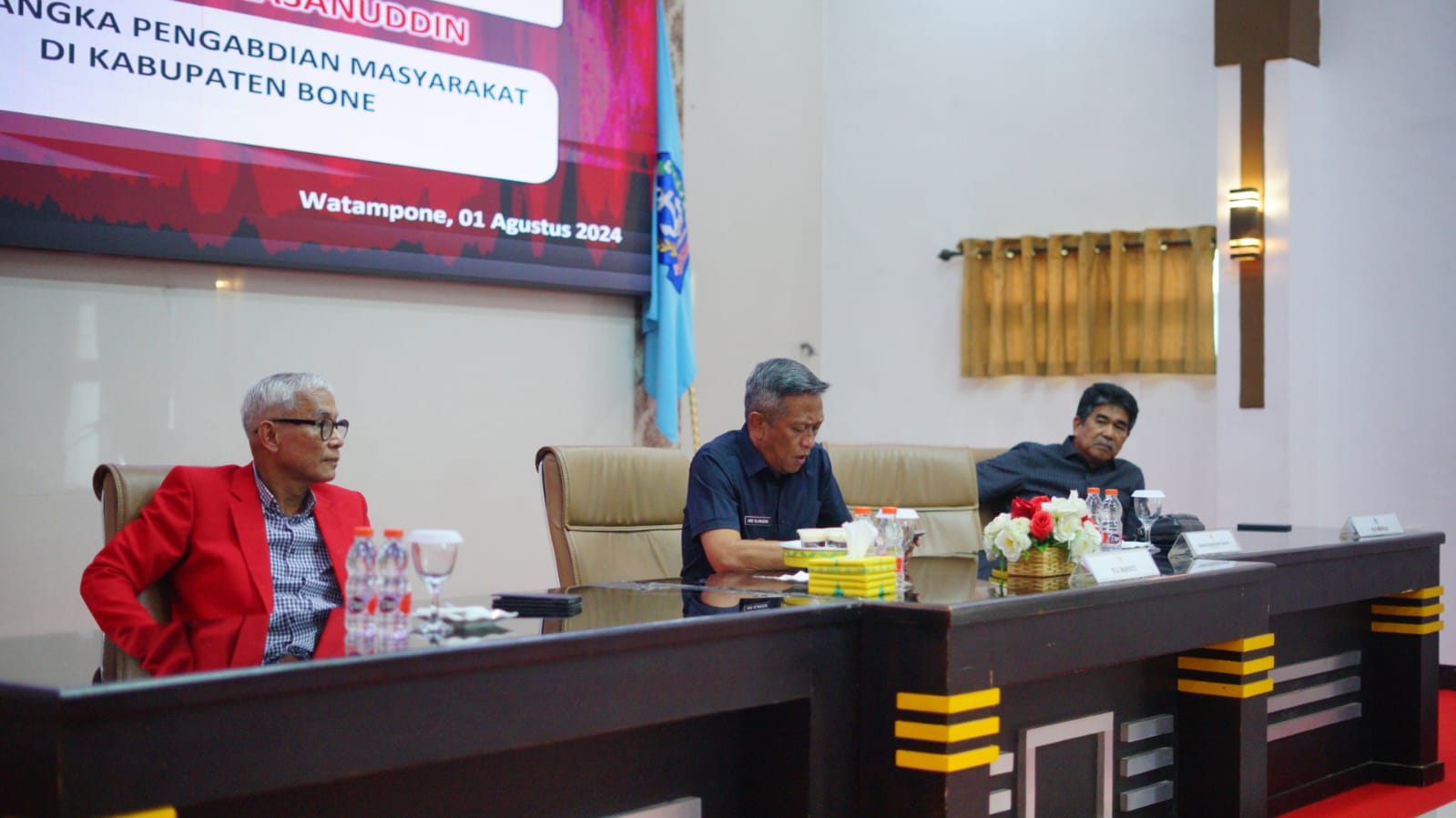 Proses penyambutan guru besar Unhas secara resmi digelar di Baruga Lateya Ri Duni Kompleks Rumah Jabatan Bupati Bone dihadiri oleh Sekretaris Kabupaten Bone Andi Gunadil Ukra beserta Asisten Setda, beberapa Kepala OPD terkait maupun yang diwakili, Kabag Kesra dan Kabag Protokol dan Komunikasi Setkab Bone.