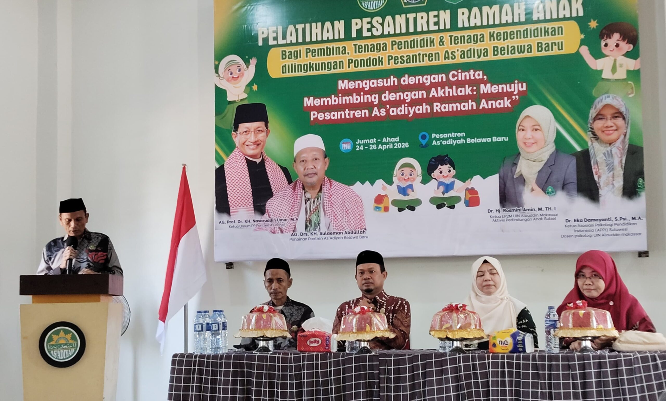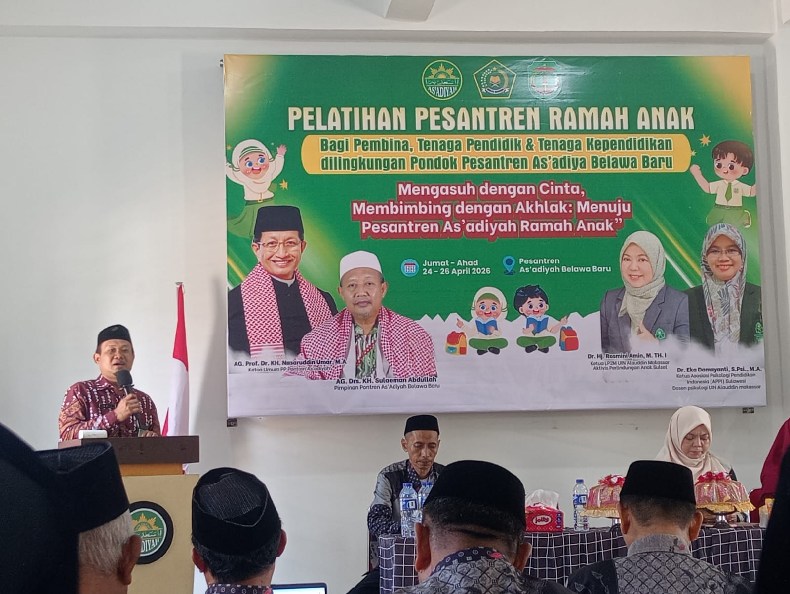 Luwu Utara, metro-pendidikan.com — Pondok Pesantren As’adiyah Belawa Baru menggelar kegiatan Pelatihan Pesantren Ramah Anak bagi para pembina, tenaga pendidik, dan tenaga kependidikan di lingkungan pesantren. Kegiatan ini mengusung tema “Mengasuh dengan Cinta, Membimbing dengan Akhlak Menuju Pesantren As’adiyah Ramah Anak”, dan berlangsung selama tiga hari, mulai Jumat hingga Ahad, 24–26 April 2026.