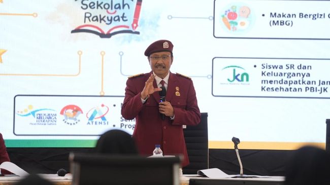 “Yang saya gunakan ini adalah contoh. Ini nanti adalah seragam almamaternya Sekolah Rakyat,” kata Gus Ipul saat memberi pembekalan Kepala Sekolah dan Guru Sekolah Rakyat di Pusat Pendidikan, Pelatihan dan Pengembangan Profesi (Pusdiklatbangprof) Kemensos RI, Cilandak, Jakarta Selatan, dikutip dari situs Kemensos, Kamis (21/8/2025).