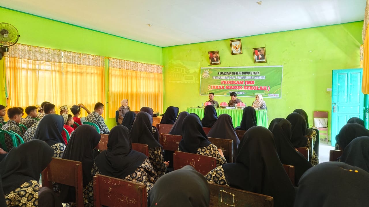 Luwu Utara, metro-pendidikan.com — Pihak Kejaksaan Negeri (Kejari) Luwu Utara menyambangi MTsN Luwu Utara untuk implementasi program Jaksa Masuk Sekolah (JMS), berlangsung di Aula MTs.N Luwu Utara, Kamis (22/2/294) kemarin.