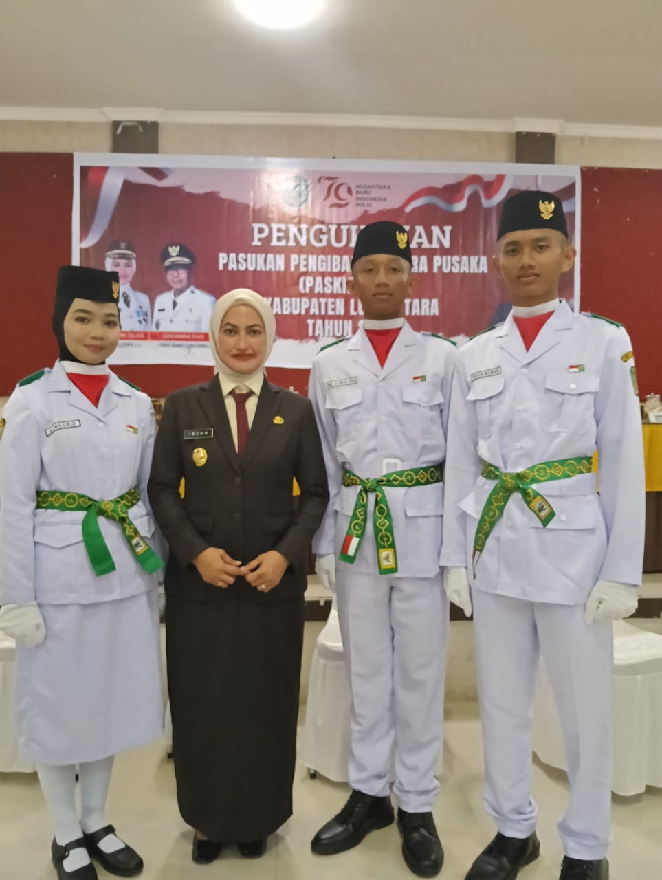 Luwu Utara.metro-pendidikan.com. Jelang puncak pelaksanaan upacara peringatan Hari Ulang Tahun (HUT) ke- 79 Republik Indonesia, tiga siswa dari Madrasah Aliyah DDI Masamba terpilih menjadi anggota Pasukan Pengibar Bendera Pusaka (Paskibraka) tingkat Kabupaten Luwu Utara. Mereka resmi dikukuhkan melalui upacara pengukuhan dilaksanakan di Aula Kantor Bupati Luwu Utara Kamis (15/08/2024) kemarin.