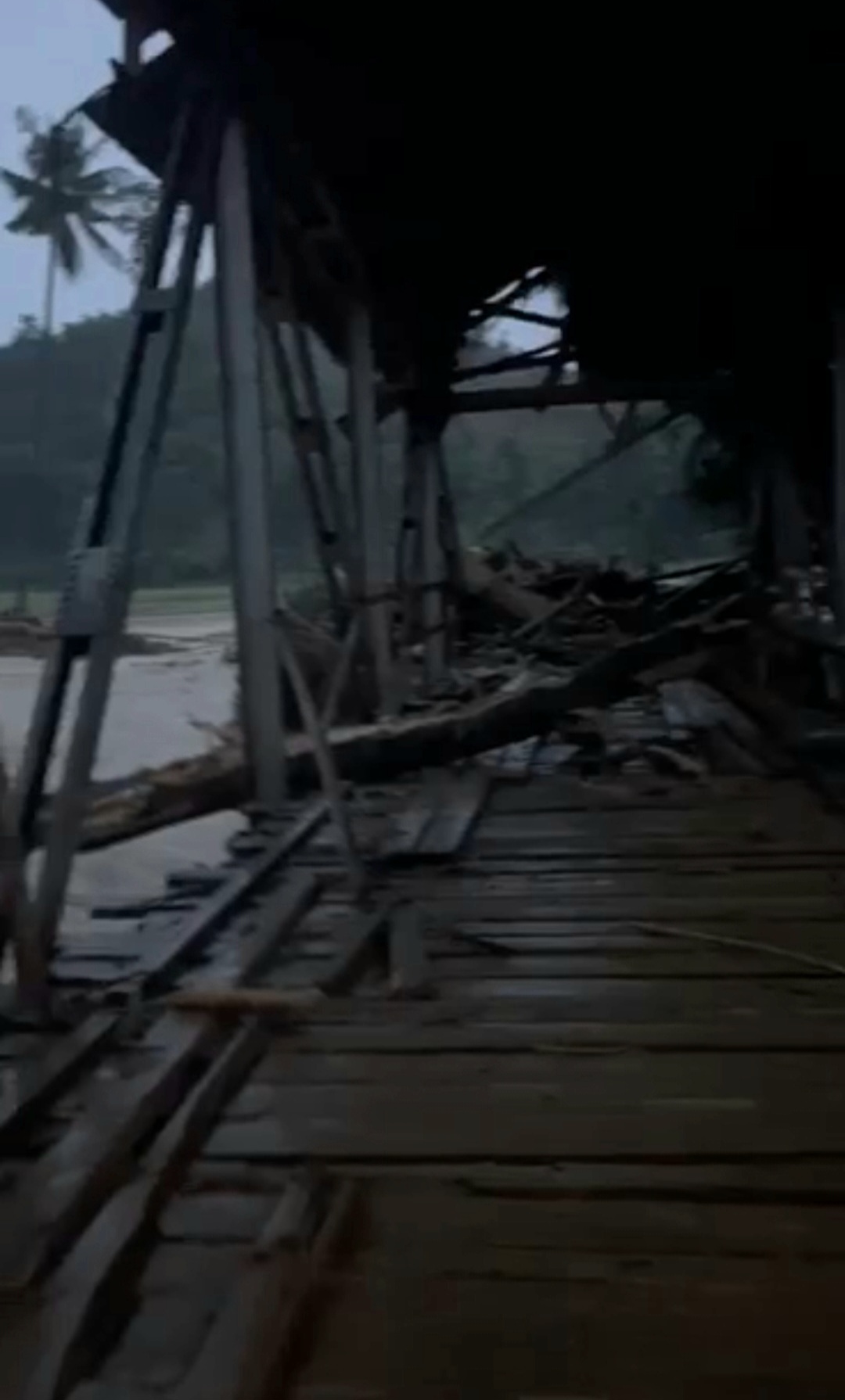 “Tidak mungkin warga dan khususnya anak sekolah menyeberang sungai apalagi melawan arus banjir dan tidak ada pilihan lain kecuali harus lewat jembatan yang papan lantainya sudah ambruk akibat termakan usia,” kata Surahman yang juga menjabat Kadus Pakkek Desa Malenggang.