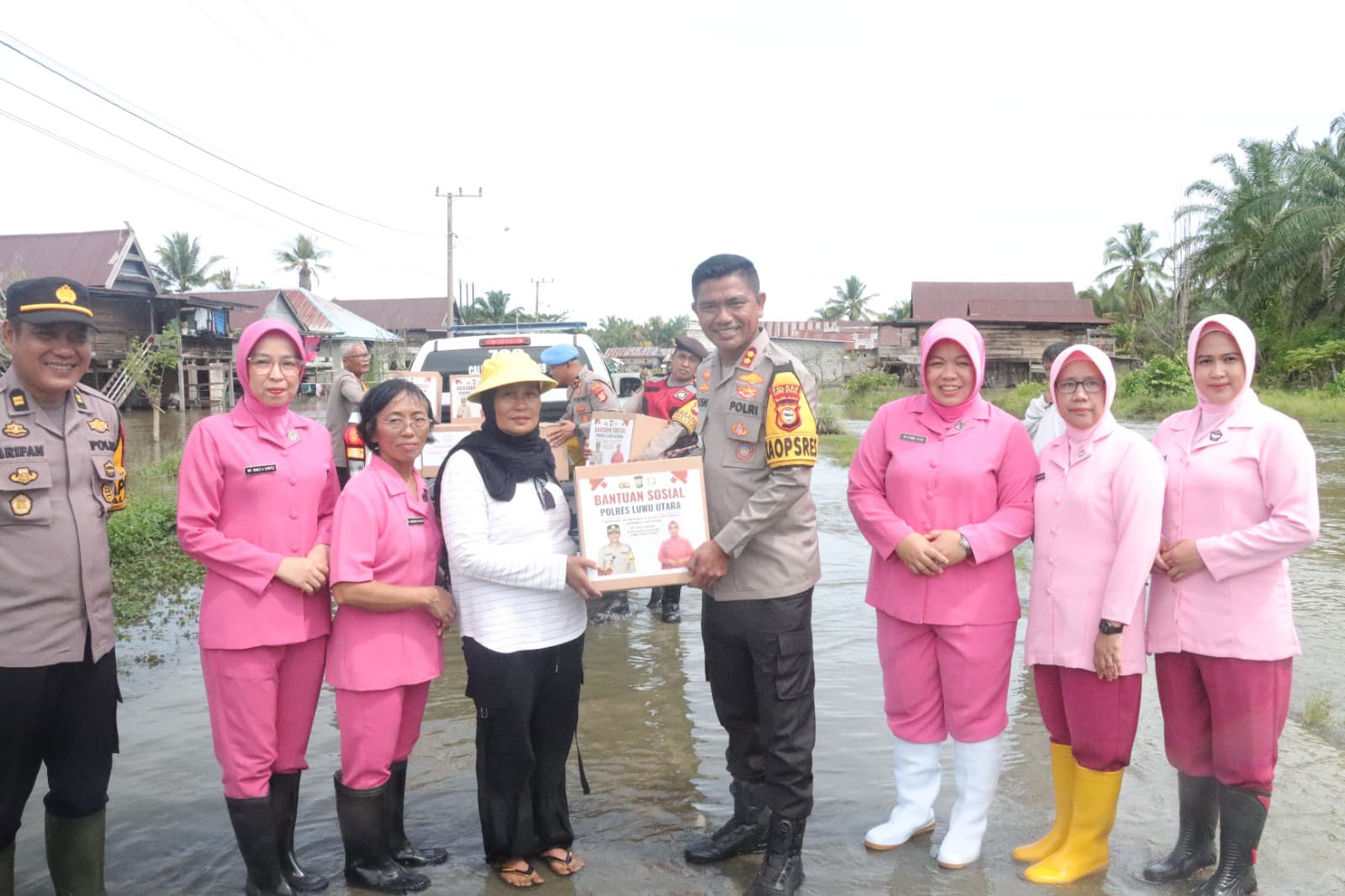 Dalam upaya penyerahan bantuan di lokasi banjir, Kapolres Luwu Utara sekaligus memantau kondisi warga sekitar yang terdampak banjir didampingi Kapolsek Malangke Iptu Arifan dan Kepala Desa Pattimang bersama sejumlah pengurus Bhayangkari Cabang Luwu Utara yang juga ikut menyerahkan bantuan kepada para korban banjir tersebut