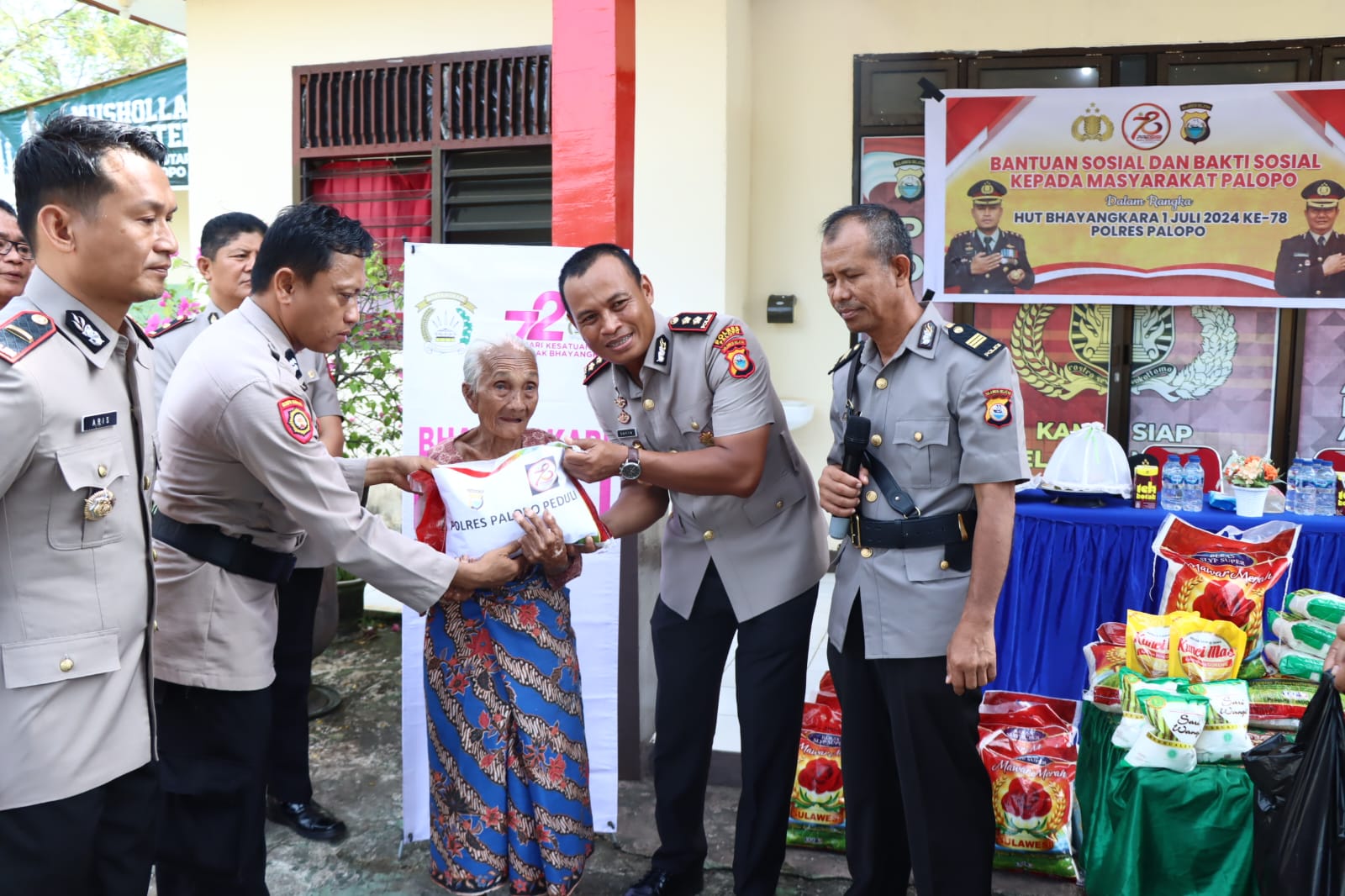Palopo-metro-pendidikan.com. Polres Palopo kembali salurkan bantuan sosial kepada warga lewat Polsek Wara Utara dan Telluwanua. Bantuan itu disalurkan jelang Hari Ulang Tahun (HUT) Bhayangkara ke-78, berlangsung Senin (24/6/2024).