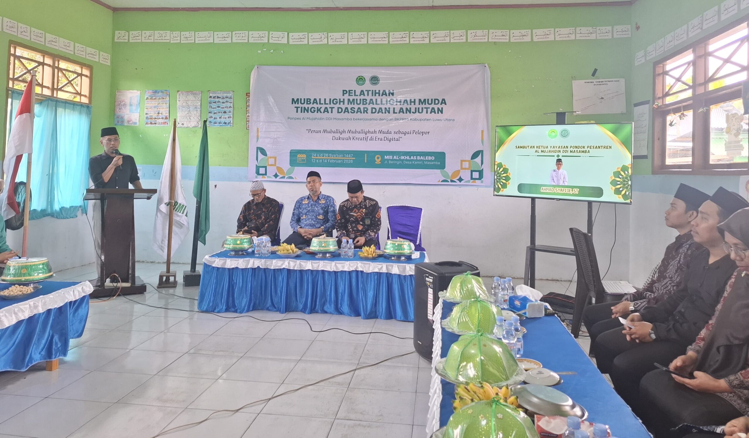 Luwu Utara.metro-pendidikan.com. Kepala Madrasah Tsanawiyah DDI Masamba, Muhammad Zuljalali, S.Pd.I, M.Pd.I menyampaikan kata sambutan dalam Pelatihan Muballighah Muda Tingkat Dasar dan Lanjutan yang diselenggarakan oleh Pondok Pesantren Al-Mujahidin DDI Masamba berkolaborasi dengan BKPRMI Kabupaten Luwu Utara, Kamis (12/2/2026).