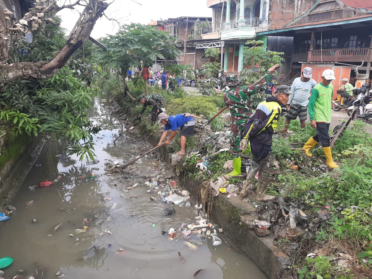 “Kegiatan ini untuk mengantisipasi terjadinya banjir, mewujudkan kesehatan masyarakat dalam mencegah wabah penyakit, bila hujan turun, selain itu sebagai media dalam menjalin silaturahmi dengan masyarakat diwilayah binaan, sehingga tercipta kekompakan dan kebersamaan bersama,” ungkap Letda Inf Murjalil.