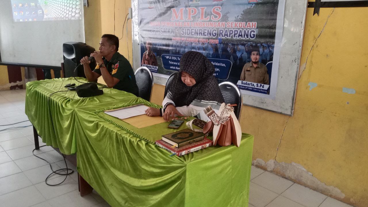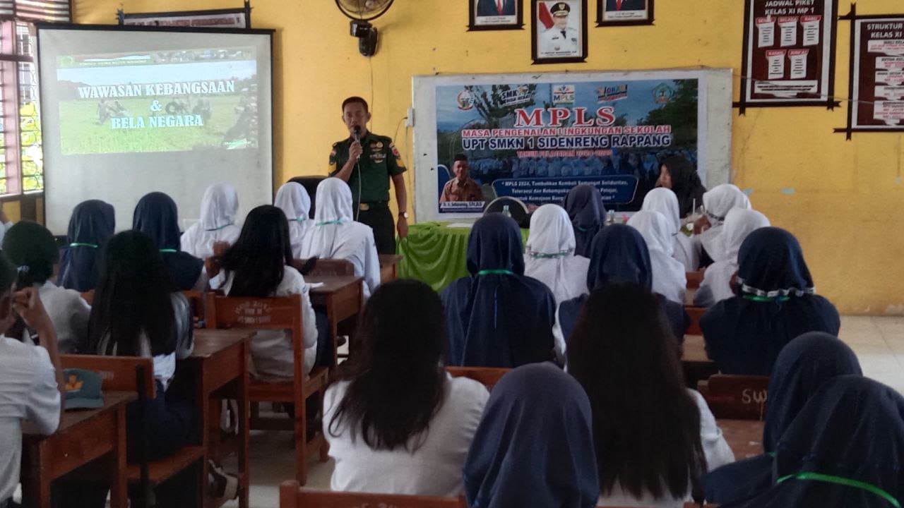 Sidrap.metro-pendidikan.com. Pada Kegiatan MPLS (Masa Pengenalan Lingkungan Sekolah) Koramil 1420-03/Marittengae Serma Muh Yunus Bati Tuud menyampaikan materi wawasan kebangsaan kepada siswa baru UPT SMKN 1 Sidenreng Rappang, Rabu baru saja ini.