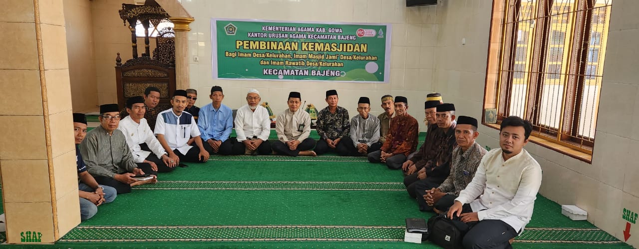 Pelaksanaan sosialisasi standar Pembinaan Manajemen Masjid kali ini diikuti imam masjid desa/kelurahan, imam masjid jam’ desa/kelurahan dan imam rawatib masjid desa/kelurahan se-kecamatan Bajeng, berlangsung di Masjid Jami’ Al Barokah, Limbung, Selasa (20/8/2024). Sedangkan pemateri Kepala KUA Bajeng HAM Yusuf Hakim, S Ag, M.Pd.I dan Drs H Akbar Samad penghulu/manta Kepala KUA Bajeng.
