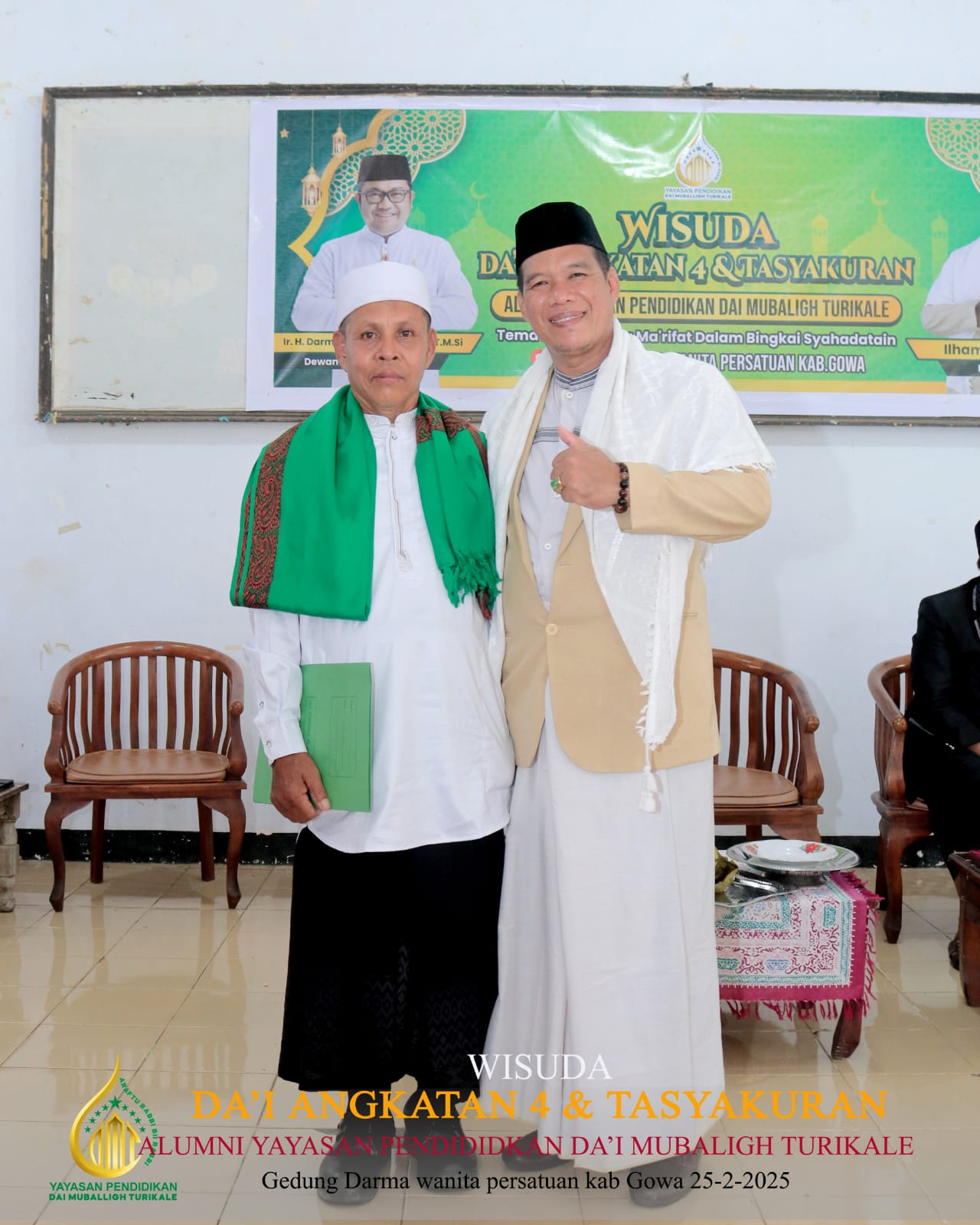 “Bapak H Darmawansyah Muin saat itu masih aktif menjadi anggota DPRD Sulsel. Kini beliau menjadi Wakil Bupati Gowa dan sekaligus menjabat Ketua Dewan Pembina di Lembaga Dai Mubaligh Turikale Takalar,’ ucap Ilham yang kerap disapa ustad Mone.