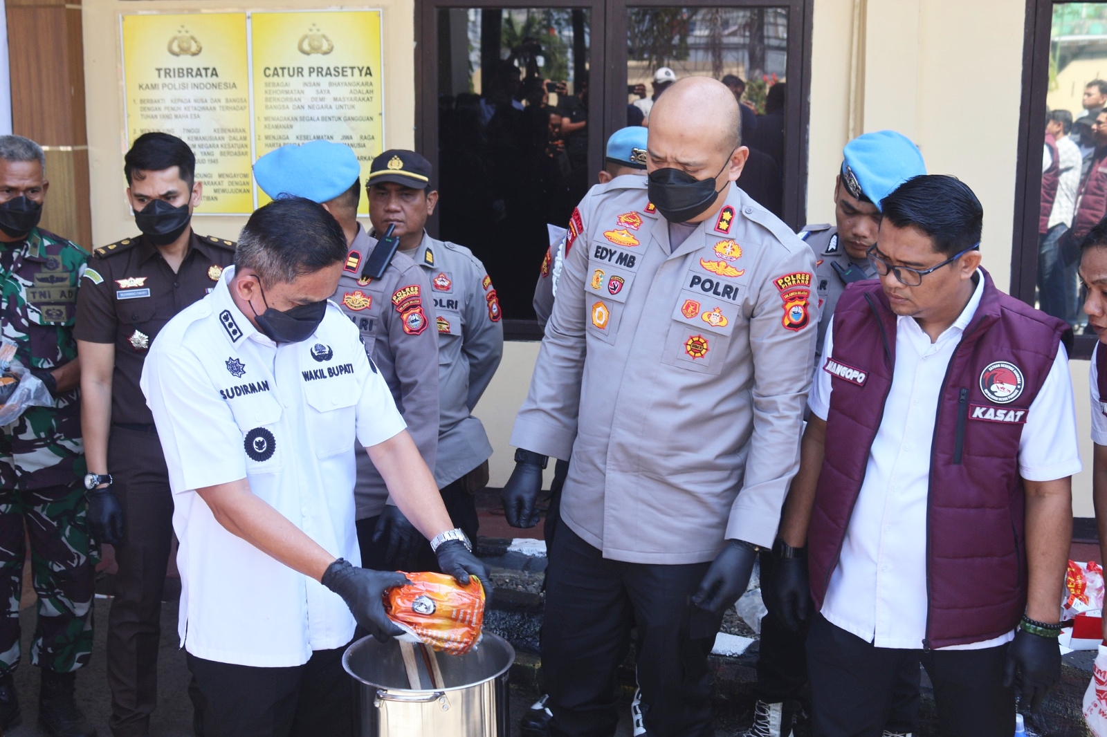 Pemusnahan dilakukan secara terbuka dengan melarutkan kristal sabu ke dalam air mendidih yang dicampur cairan pembersih lantai (bahan kimia vortex). Langkah ini memastikan zat metamfetamin tersebut hancur total dan tidak dapat disalahgunakan kembali.
