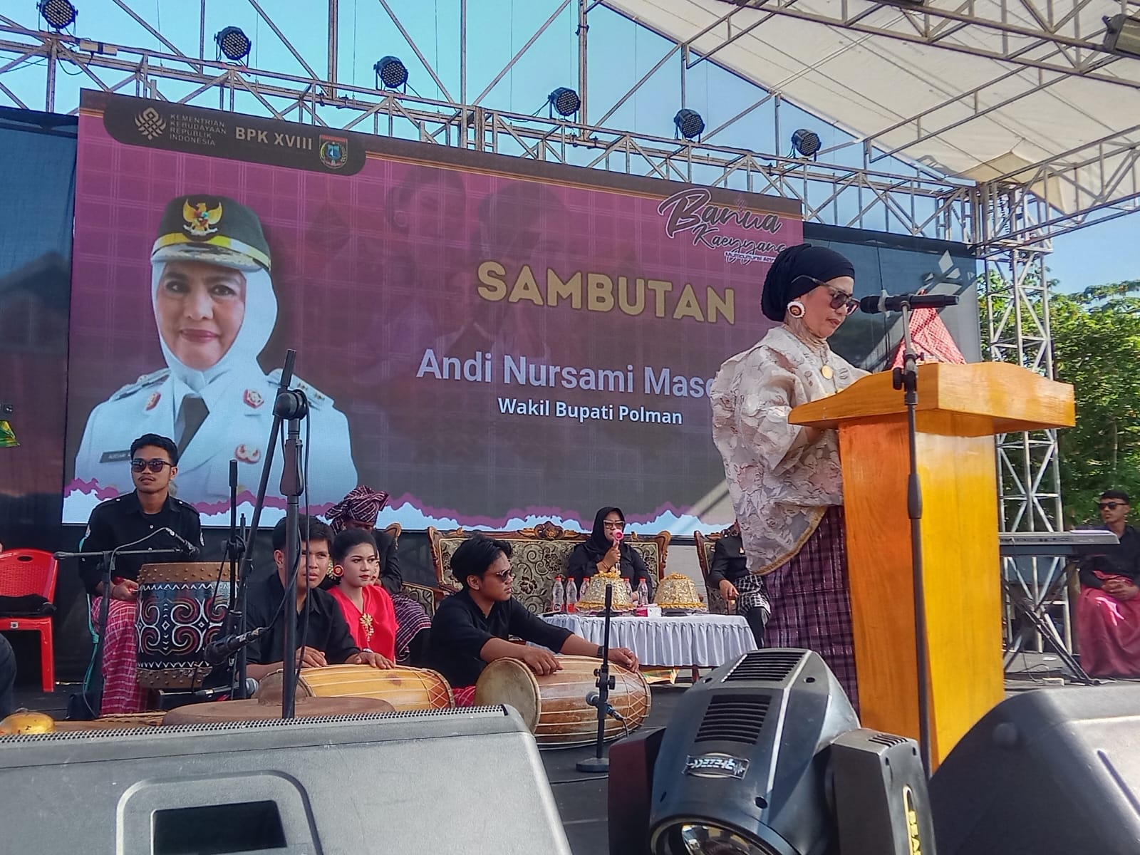 Wakil Bupati Polewali Mandar Hj. Andi Nursami Masdar mwakili Bupati membuka dan sekaligus membacakan sambutan. Pertama tama marilah kita pamjatkan puji dan Stukur kehadirat Allah SWT, Tuhan Yang Maha Esa karena atas limpahan rahmat dan karunianya kita dapat hadir dan berkumpul dalam suasana penuh kebersamaan pada kegiatan BANUA KAEYYANG MULTUKULTURAL ATTRACTION yang diselenggarakan oleh Balai Pelestarian Kebudayaan Wilayah 18.