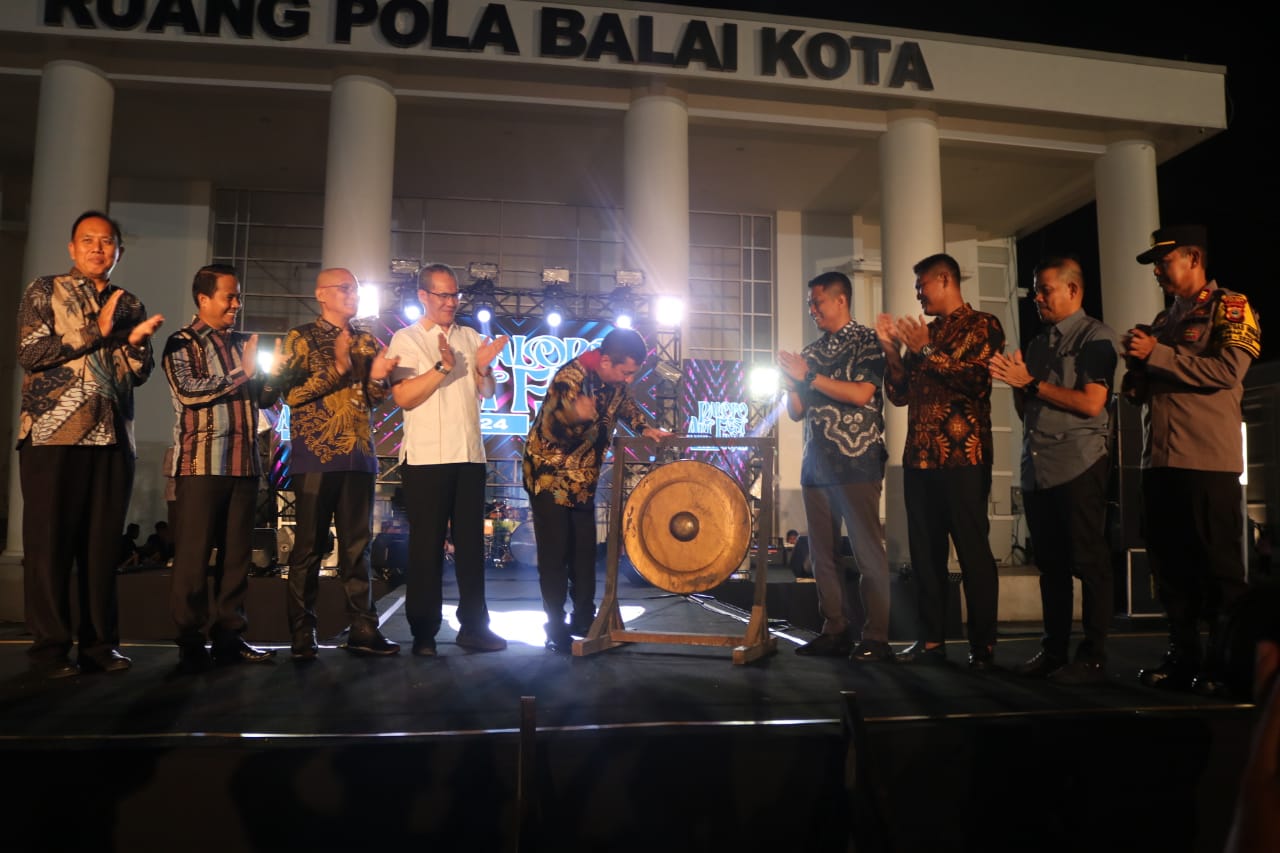 Setelah pembacaan sambutan Di lanjutkan dengan launching kegiatan Palopo ART Festival dan Pameran Produk Kreatif Palopo Tahun 2024, dengan Pemukulan Gong.