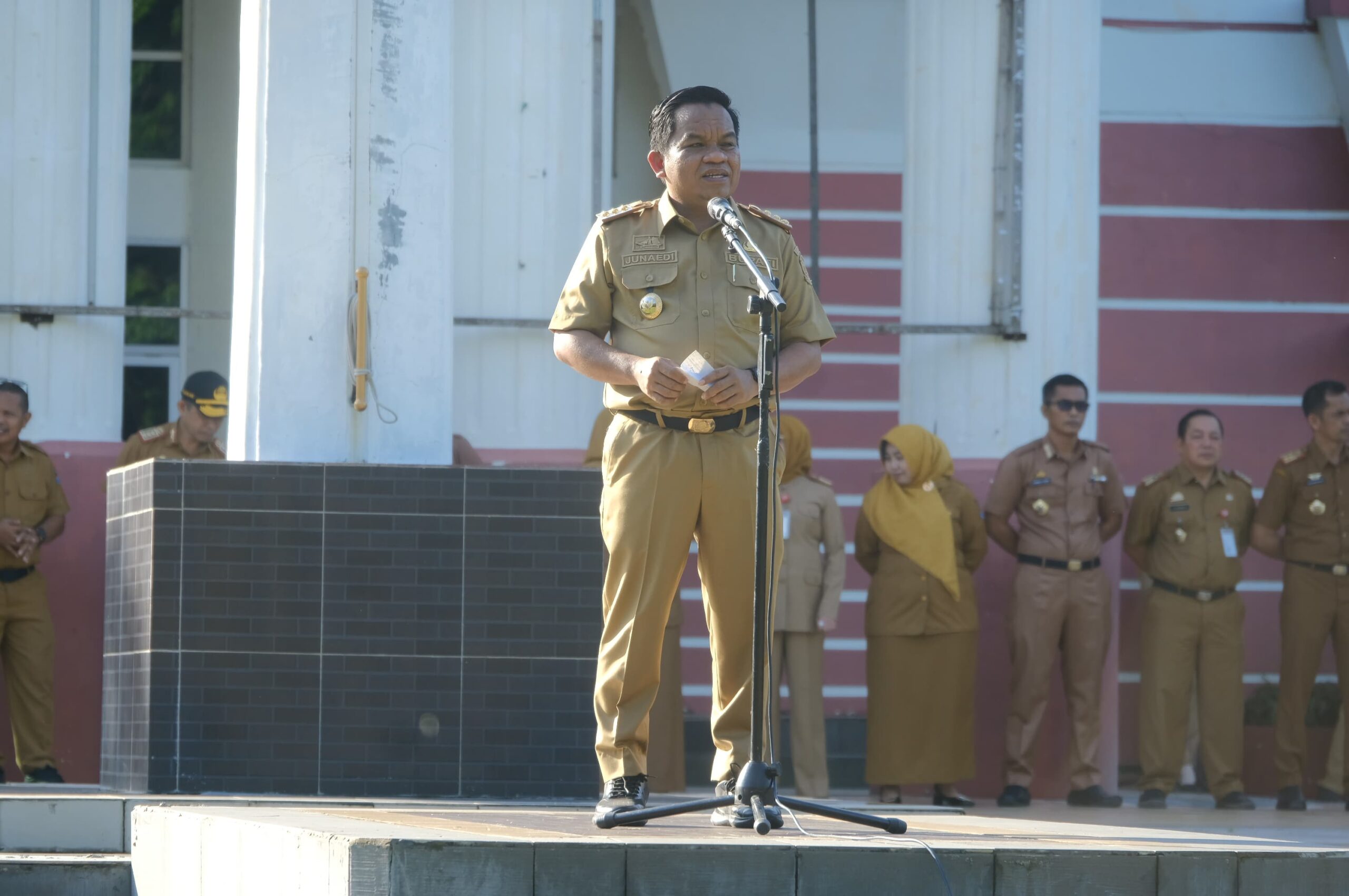 Junaedi Bakri menyampaikan kepada ASN agar tidak larut dalam politik praktis dan terus berupaya untuk memegang komitmen untuk senantiasa menjunjung tinggi netralitas ASN pada pelaksanaan pemilu yang akan Insya Allah dilaksanakan pada tanggal 14 Februari 2024 mendatang. “ASN tentu harus paham mengetahui berbagai tahapan-tahapan dan tidak larut dalam suasana kontestasi politik praktis di lapangan, ” Ungkap *Edi Bakri*