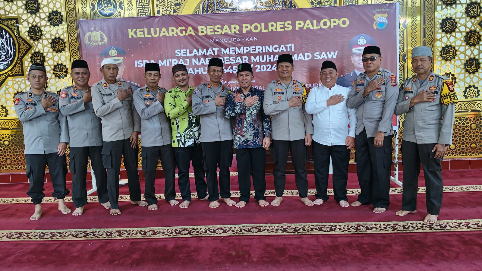 Palopo, metro-pendidikan.com – Polres Palopo menggelar peringatan Isra’ Mi’raj Nabi Muhammad SAW Tahun 1445 H/2024 M. Kegiatan ini digelar di Masjid Hidayatul Ikhlas Polres Palopo Kelurahan Boting, Kecamatan Wara Kota Palopo, Kamis (8/2/2024).
