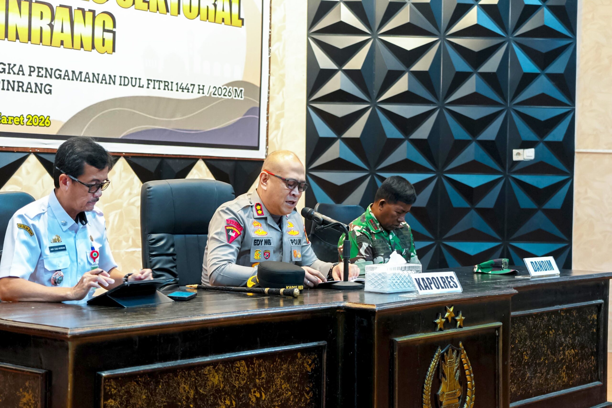 Pinrang, metro-pendidikan.com — Polres Pinrang menggelar Rapat Koordinasi Lintas Sektoral dalam rangka kesiapan pelaksanaan Operasi Ketupat 2026 untuk pengamanan Hari Raya Idul Fitri 1447 H / 2026 M di Kabupaten Pinrang. Kegiatan tersebut berlangsung di Aula Wicaksana Laghawa Polres Pinrang pada Rabu (11/3/2026) pagi.