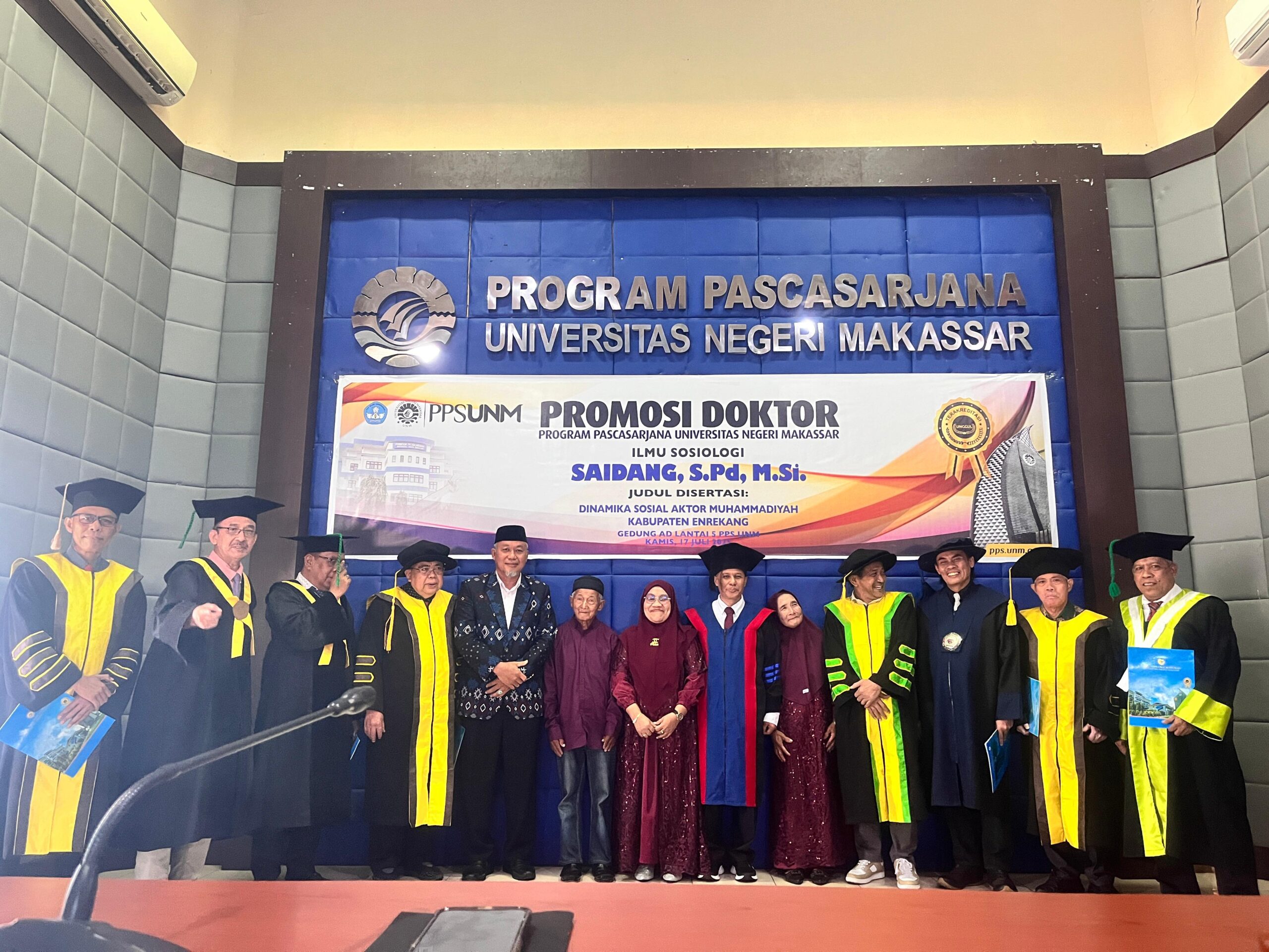 Makassar.metro-pendidikan.com. Satu lagi dosen Universitas Muhammadiyah Enrekang (UNIMEN) berhasil meraih gelar tertinggi dalam bidang akademik yakni Saidang yang juga Wakil Rektor III UNIMEN. Ia resmi menyandang gelar Doktor setelah menjalani Sidang Promosi Doktor di Program Pascasarjana Universitas Negeri Makassar (UNM) pada Program Studi Ilmu Sosiologi, Kamis (17/7/2025).