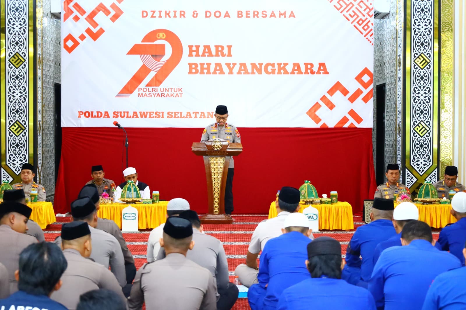 Makassar, metro-pendidikan.com — Dalam rangka memperingati Hari Bhayangkara ke-79, Kepolisian Daerah Sulawesi Selatan (Polda Sulsel) menggelar kegiatan zikir dan doa bersama sebagai bagian dari rangkaian Pembinaan Tradisi Peringatan Hari Bhayangkara tahun ini. Kegiatan tersebut berlangsung khidmat dan penuh makna spiritual, menjadi momentum refleksi dan ungkapan rasa syukur atas pengabdian Polri kepada masyarakat, bangsa, dan negara.