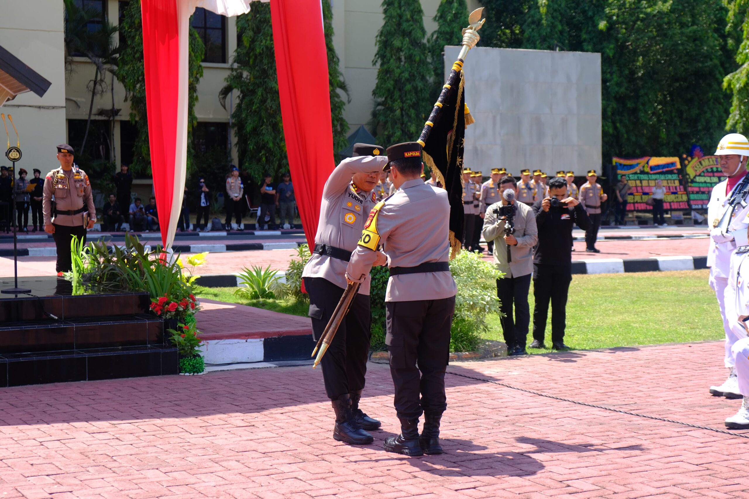 Penyerahan pataka tersebut dilaksanakan dalam upacara serah digelar di Lapangan Upacara Mapolda Sulsel, Rabu. (02/10/2024).
