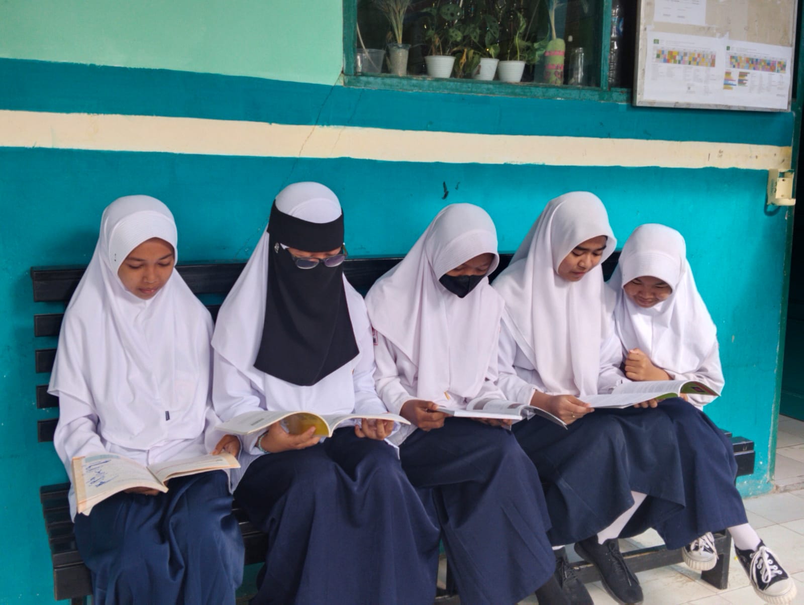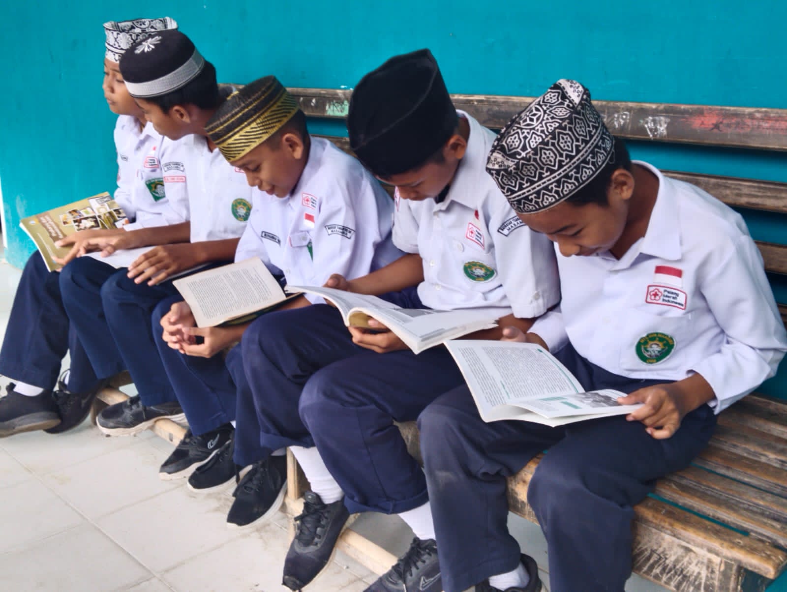 Berjalan selama satu jam penuh, suasana halaman madrasah dipenuhi dengan kesenyapan dan konsentrasi. Peserta didik duduk rapi dengan buku bacaan masing-masing.