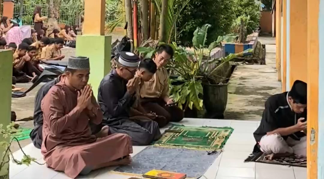 Palopo.metro-pendidikan.com Upaya meningkatkan nilai nilai keimanan dan ketakwaan siswa kepada Tuhan Yang Maha Esa, pihak SMAN 5 Palopo membuat inovasi melalui pelaksanaan shalat dhuha secara berjamaah rutin hari Jum’at dan literasi baca al-Qur’an bersama. Diikuti para siswa, guru termasuk kepsek berlangsung di pelataran halaman depan SMA Negeri 5 Palopo, Jum’at 2 Agustus 2024.