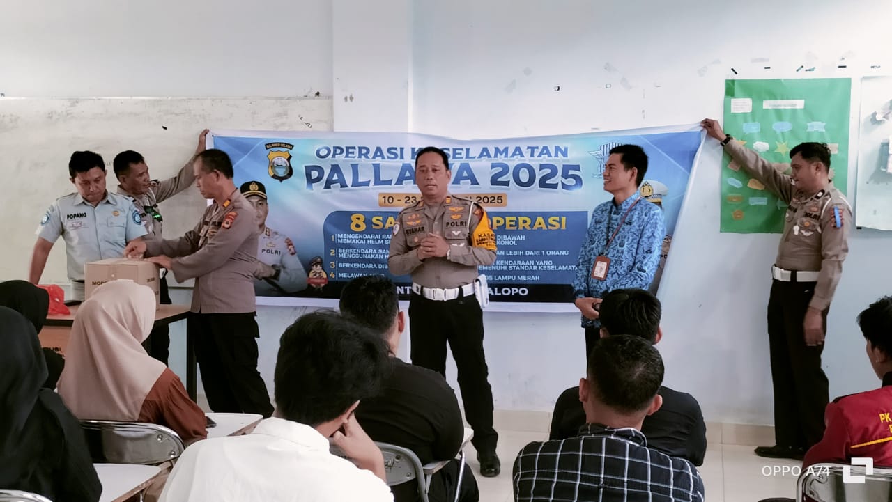 Palopo. metro-pendidikan.com. Sosialisasi Operasi Keselamatan Pallawa hari ke-8 2025 Polres Palopo digelar di kampus IAIN Palopo, Senin 17 Februari 2025. kunjungan ini dipimpin.Kasat Lantas Polres Palopo AKP Syaharuddin, SH.