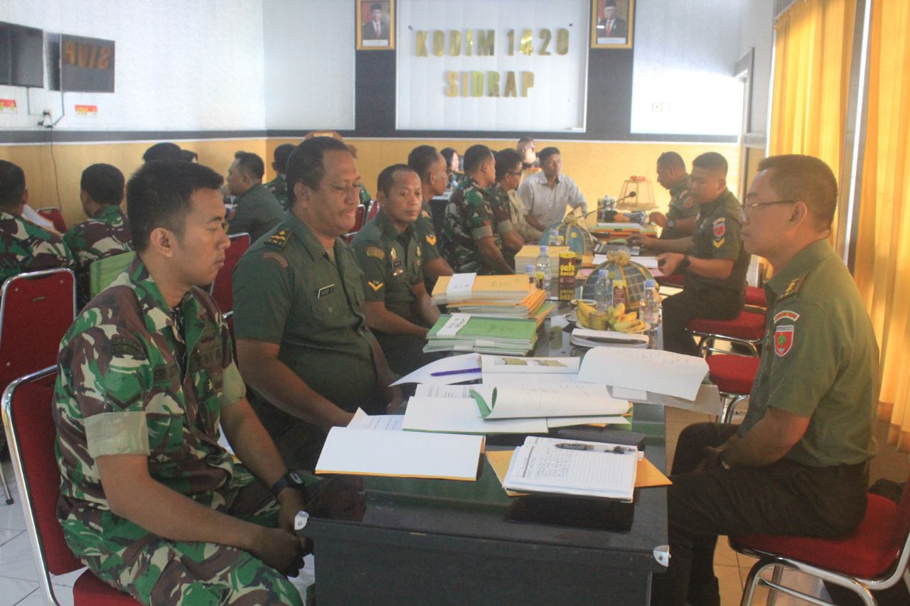 Sidrap-metropendidikan.com. Tim Wasrik Inspektorat Daerah Militer (Itdam) XIV/Hasanuddin melaksanakan pengawasan dan pemeriksaan (Wasrik) terhadap program kerja dan anggaran tahun 2024. Kegiatan ini berlangsung di ruang Data Kodim 1420/Sidrap Jalan Jenderal Sudirman, Kabupaten Sidenreng Rappang, Rabu (15/05/24).
