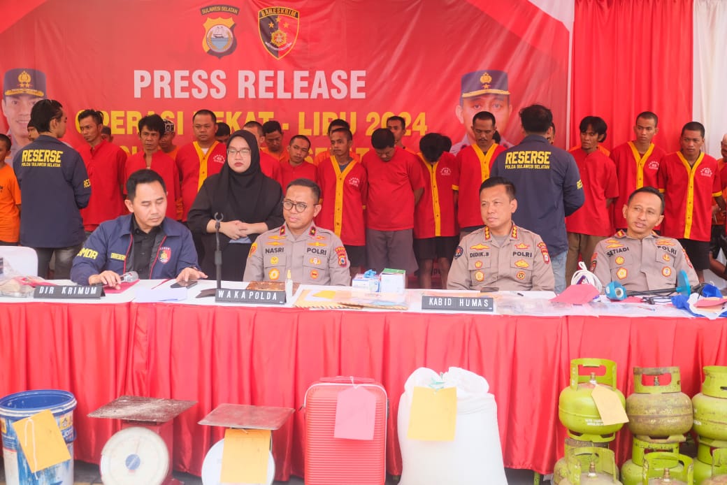 “Jadi yang kami rilis hari ini adalah para pelaku kriminal atau penyakit masyarakat. Mereka ini diamankan selama operasi Pekat Lipu 2024 dari Polda Sulsel dan jajaran Polda Sulsel,” ungkap Wakapolda Sulsel kepada wartawan.