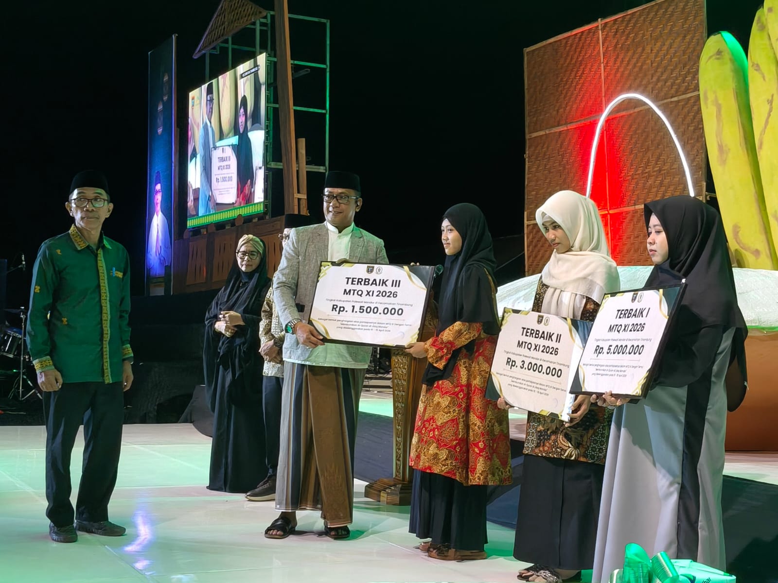 Rangkaian acara berlangsung tertib, diawali dengan pembukaan, pembacaan ayat suci Al-Qur’an, menyanyikan lagu Indonesia Raya dan Mars MTQ, laporan panitia, sambutan Bupati, hingga pengumuman pemenang dan penyerahan hadiah.